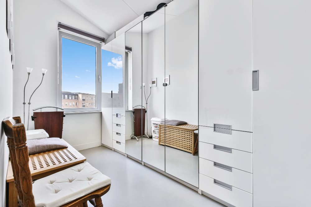 Учет особенностей интерьера комнаты — это заключительный и значимый этап в выборе шкафа-купе. Перед покупкой важно продумать, как шкаф будет гармонировать с уже имеющейся мебелью, декором и общей цветовой гаммой помещения. Например, для помещений в стиле скандинавского минимализма подойдут шкафы с простыми ровными линиями и светлой отделкой, а для богато украшенных классических интерьеров лучше выбрать модели с элементами резьбы и из массива дерева.