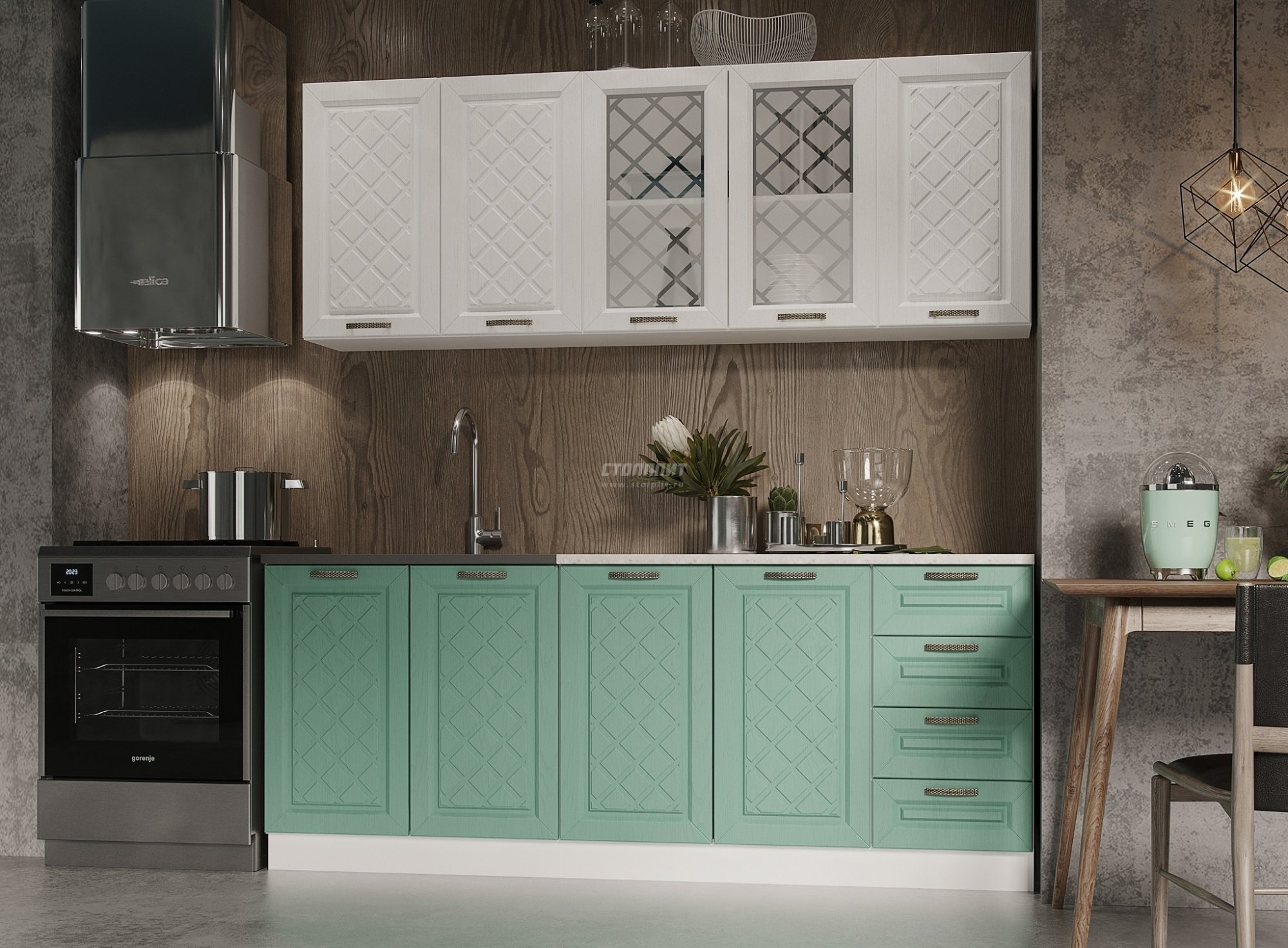 Кухня Агава 2,0 м Акация Белая/Мята МДФ