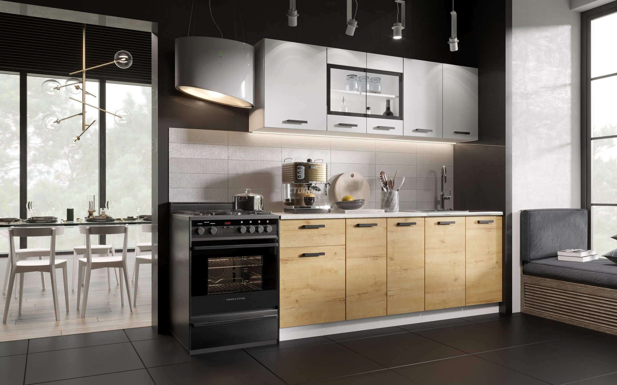 Кухня Хозяюшка Белый гладкий/Дуб Вотан 2,0м