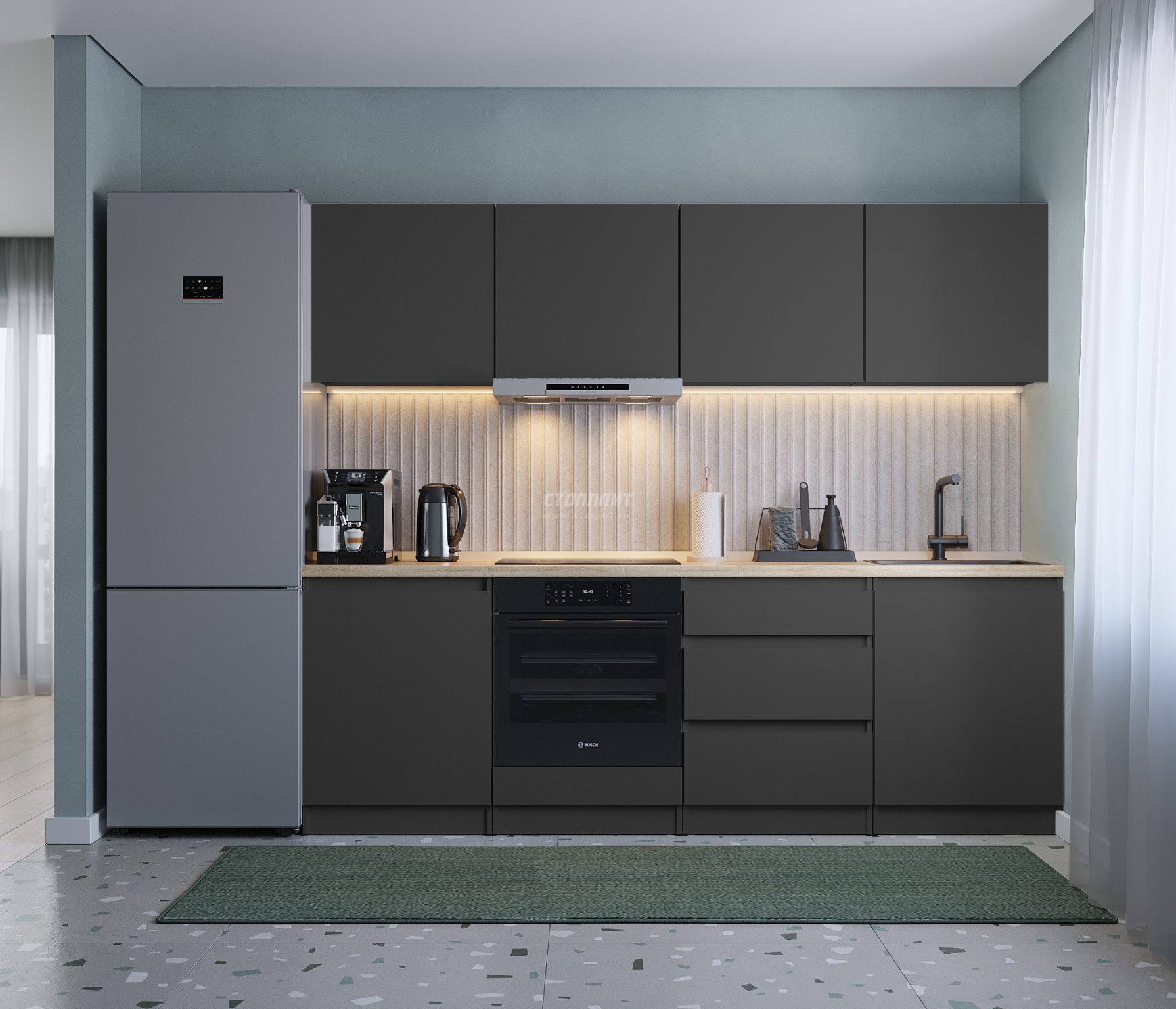 Кухонный гарнитур Леон прямой 240 см, диамант серый