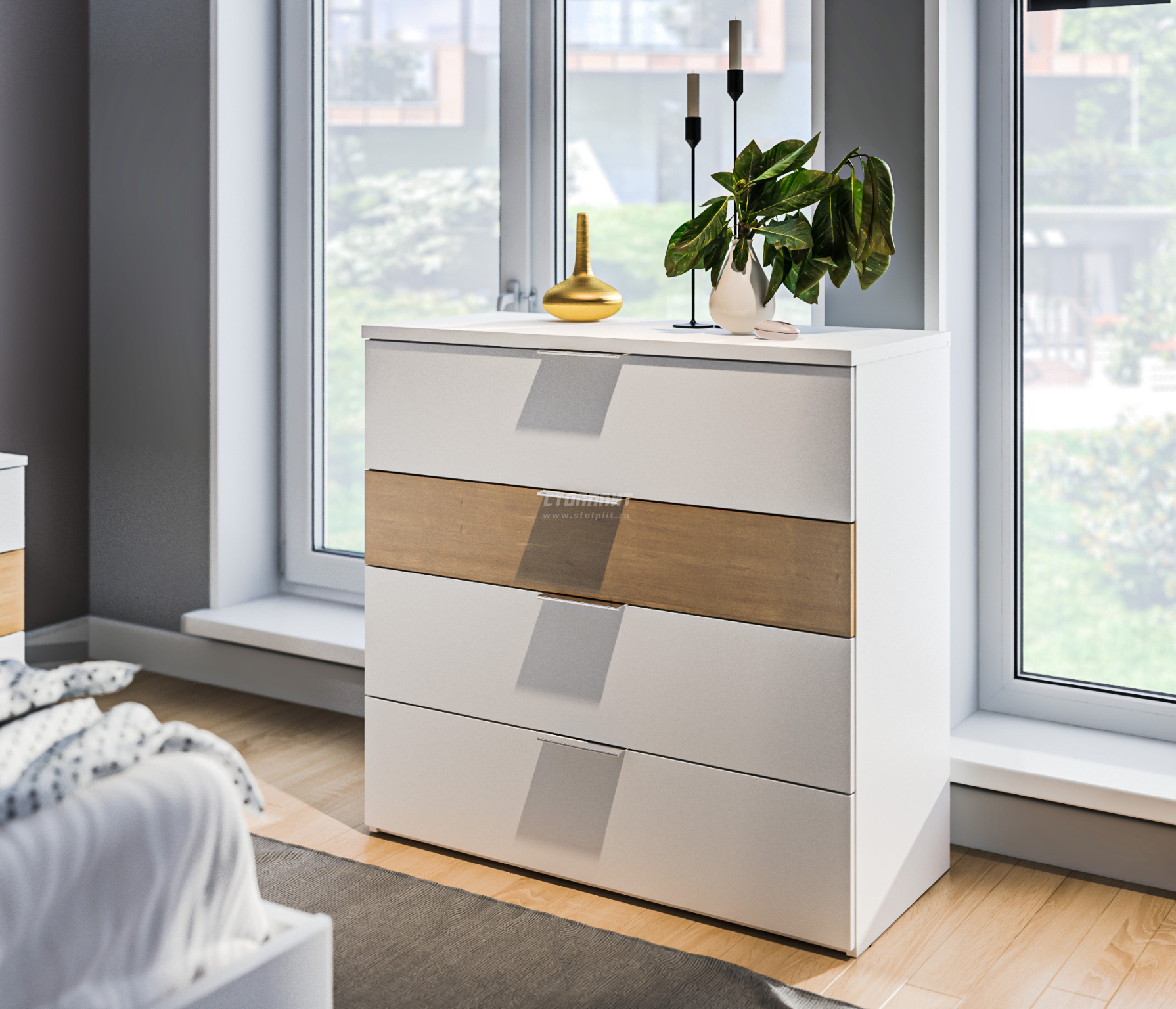 Комод Мальта СБ-3296 Белый/Дуб Гамильтон,МДФ Белый
