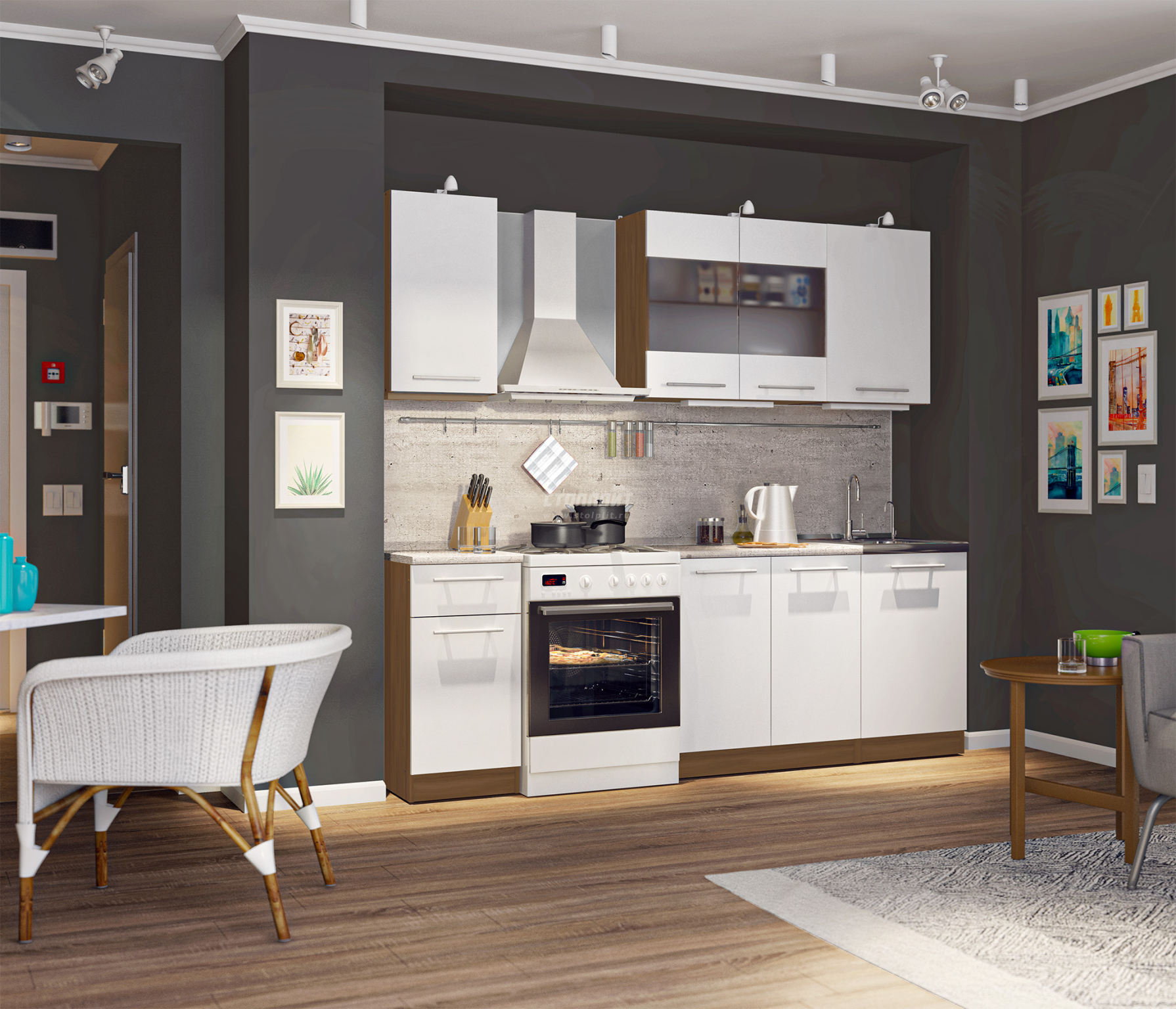 Кухонный гарнитур Элен Вишня Мадера / Белый глянец 1,7 м