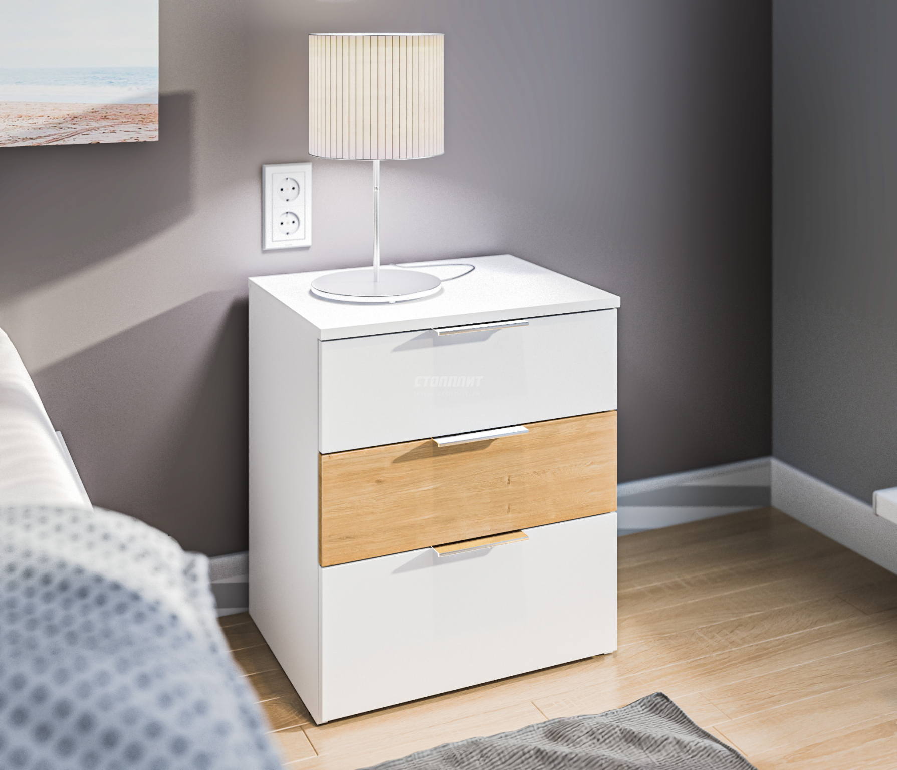 Тумба с ящиками Мальта СБ-3295 Белый/Дуб Гамильтон,МДФ Белый