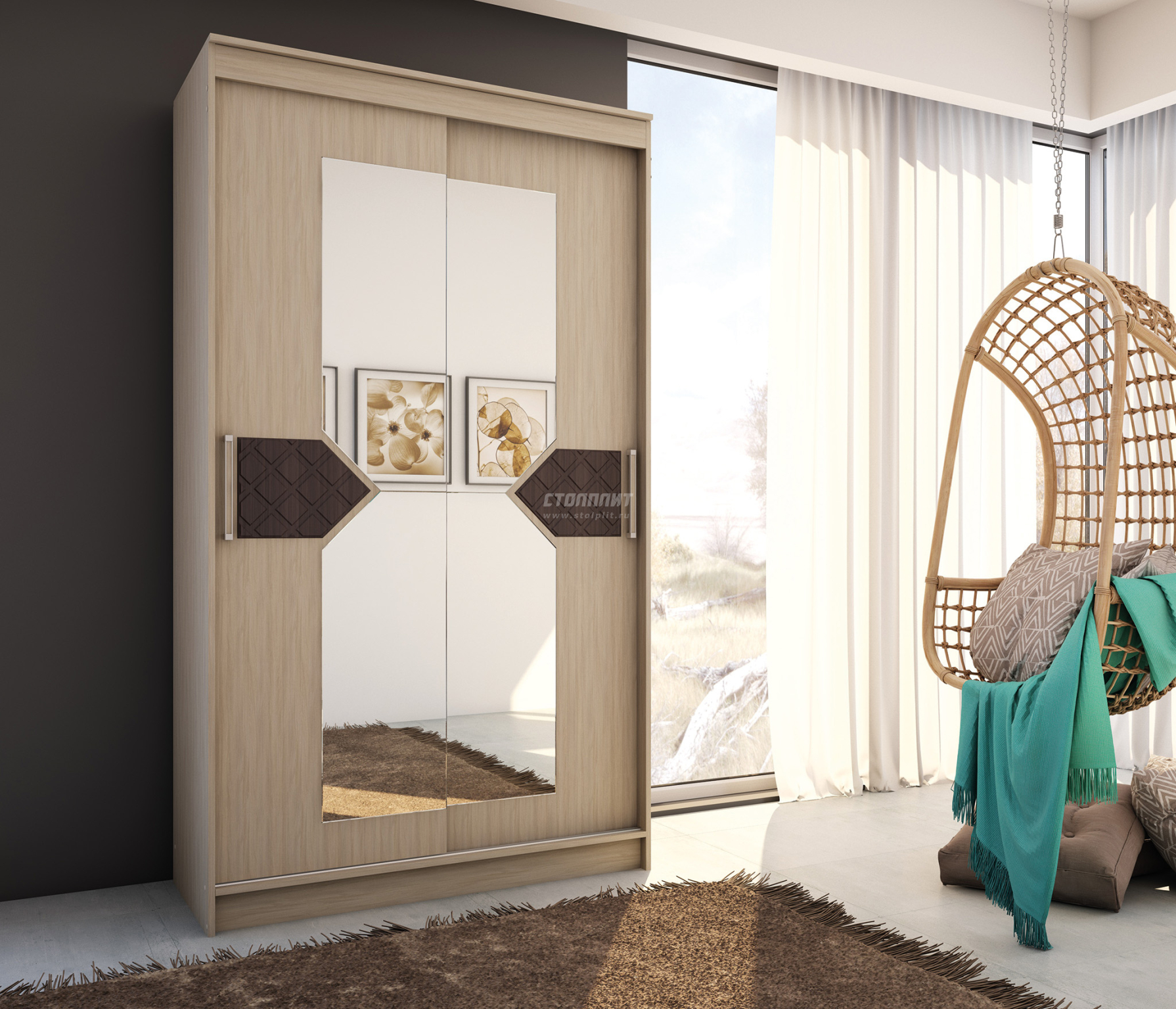 ЛДСП Шкаф-купе НИКОЛЬ 2 Ясень Шимо-Лиственница темная
