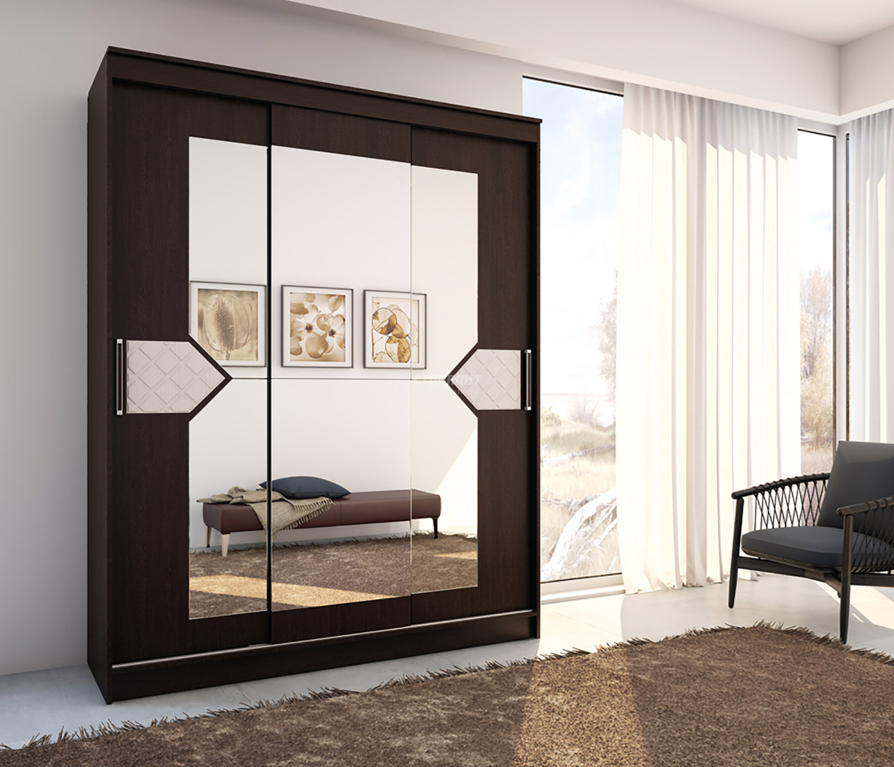 ЛДСП Шкаф-купе НИКОЛЬ 3 Венге-Лиственница светлая
