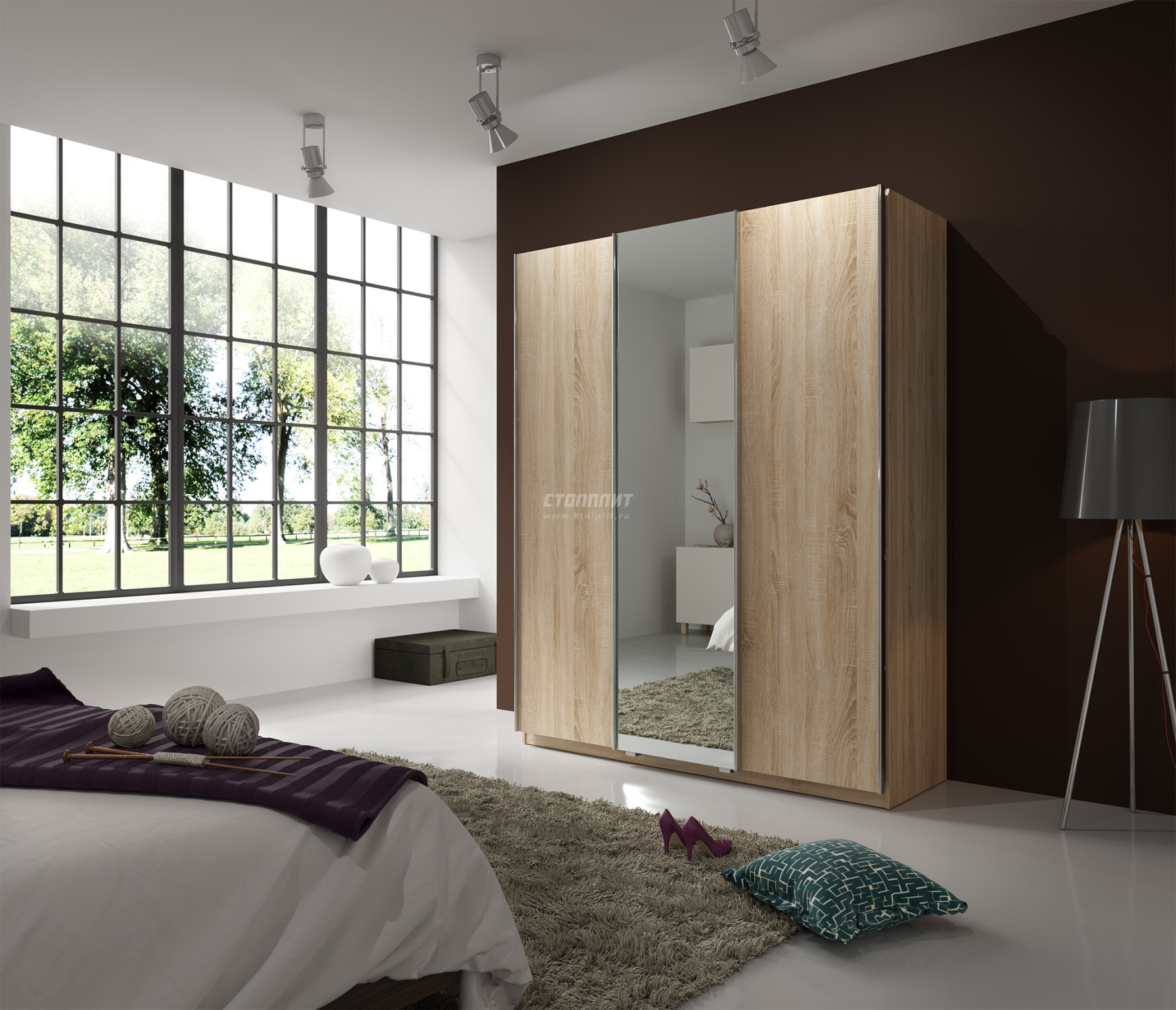 Палермо СБ-2060 Шкаф-купе (1768) Дуб Сонома 2D/Текстиль