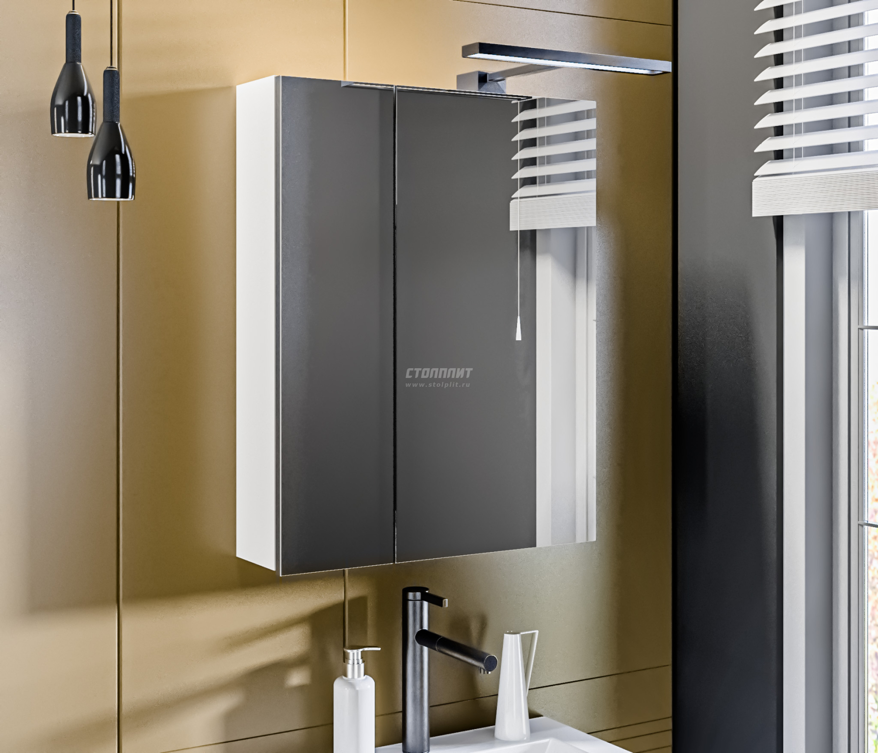 Шкаф 2х дверный с зеркалом Люкс СБ-3152 Белый
