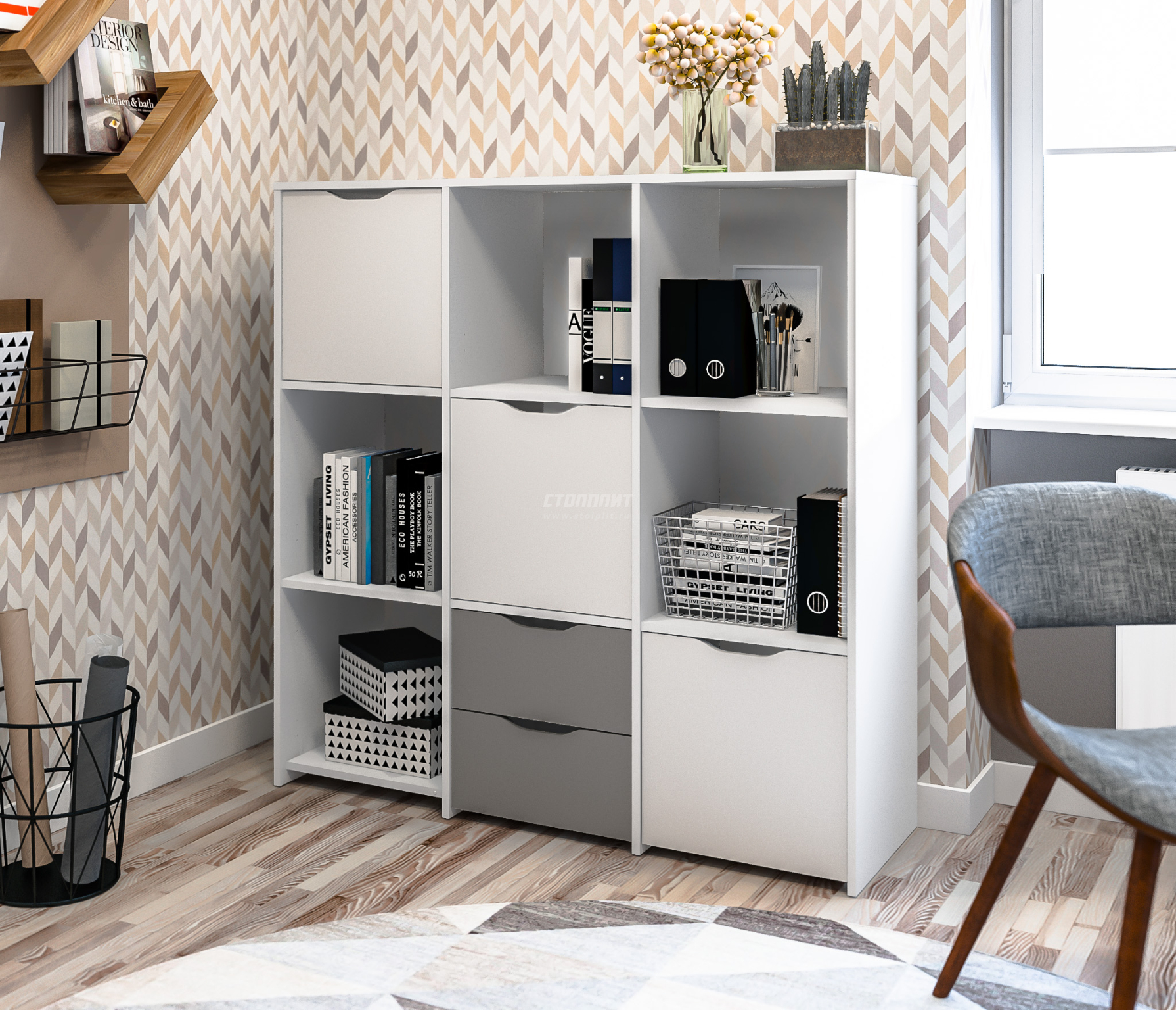 Стеллаж Mika / Мика СБ-3278 Белый/Белый,Серый
