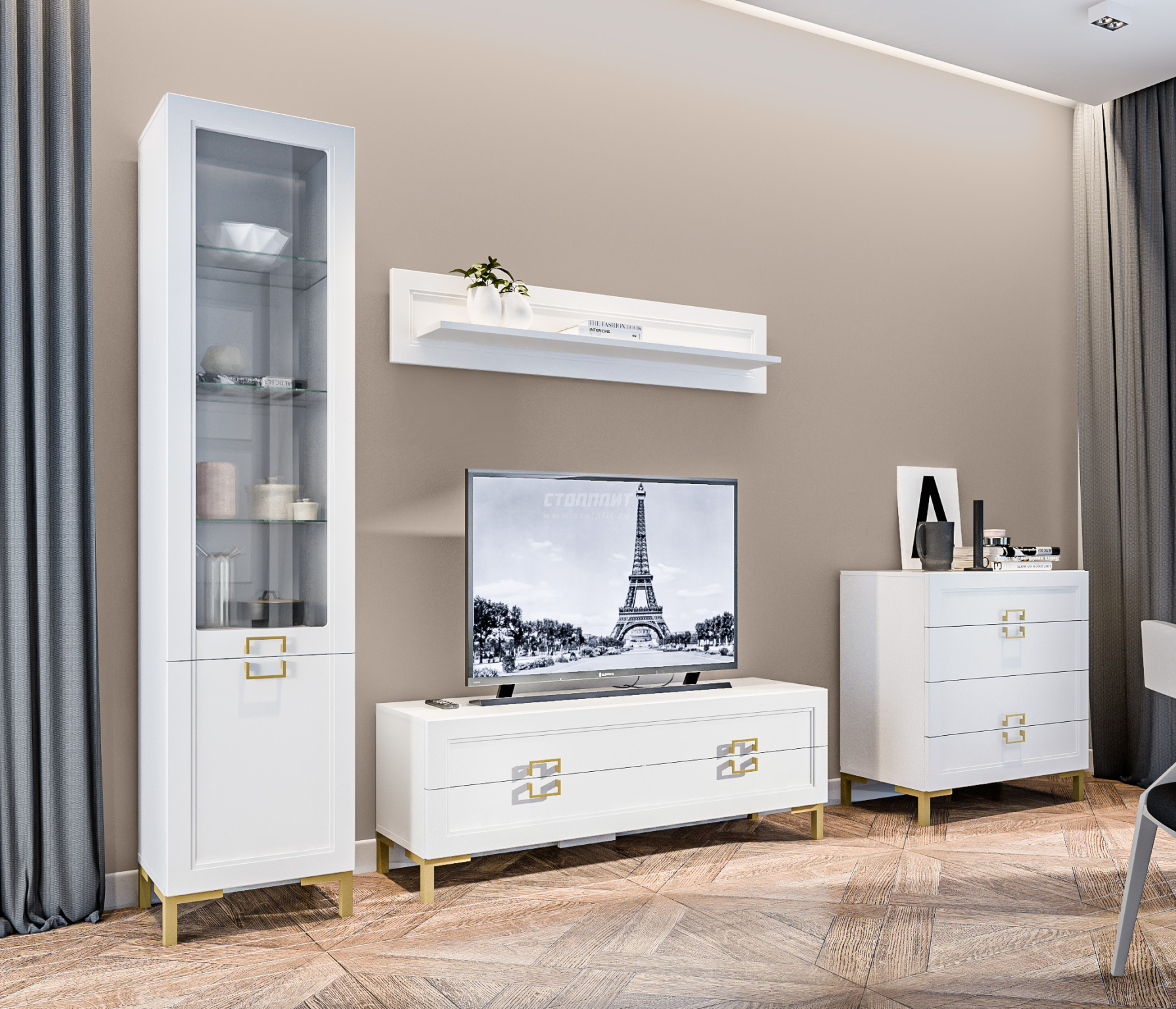 Комплект для гостиной с комодом Ассоль Белый/МДФ Белый