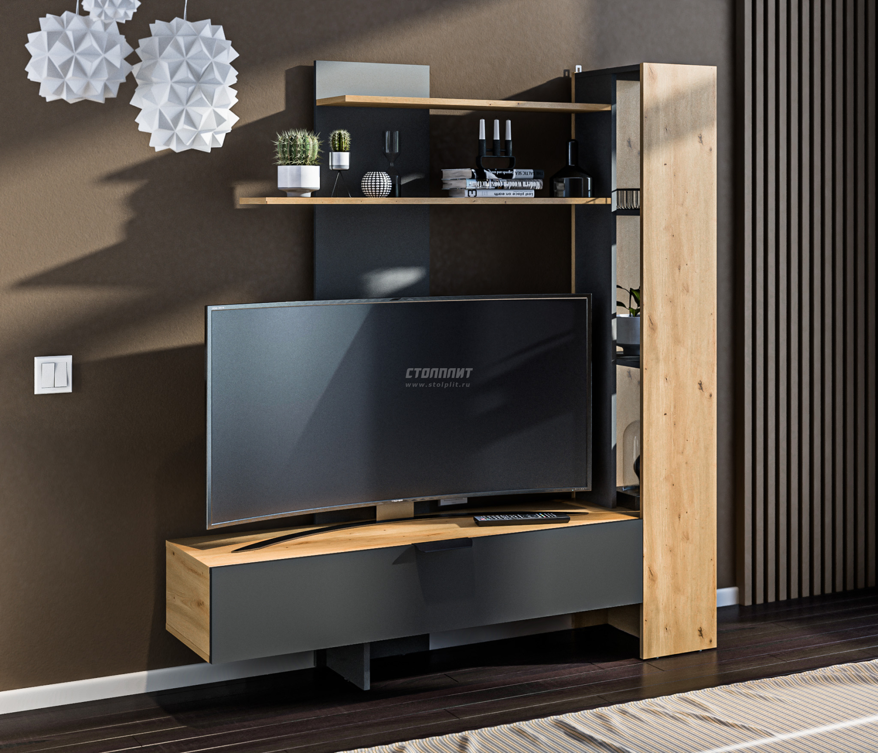 Стенка Лофт СБ-3411 Дуб дикий,Диамант серый/Диамант серый