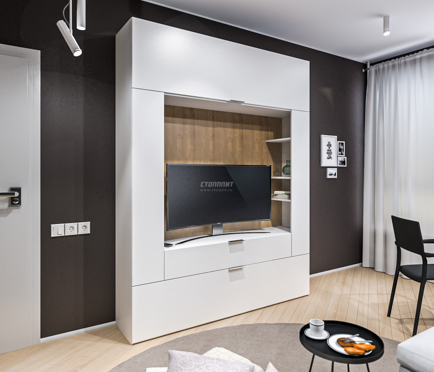 Стенка Мальта СБ-3265 Белый,Дуб Гамильтон/МДФ Белый