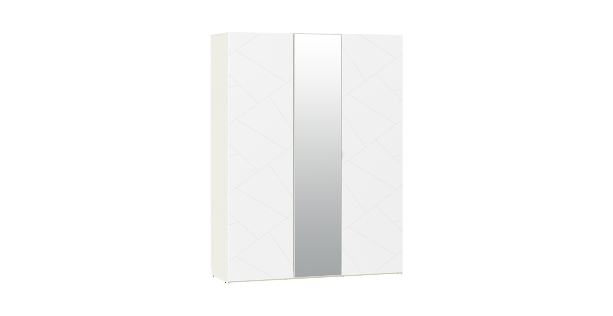 Шкаф Позитано – важный элемент спальной комнаты. Большая площадь фасадов с красивыми ассиметричными линиями задаёт тон гарнитура, а наполнение заменяет полноценную гардеробную. Штанга, множество полок и главное – зеркало. Незаметная ручка на створке с зеркалом позволит сохранить поверхность чистой, чтобы идеально отражать ваш образ.