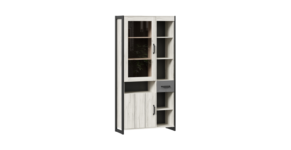 Шкаф-витрина Кимберли Дуб Крафт белый/Серый шифер